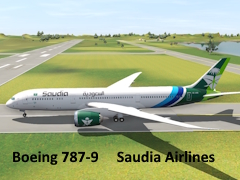 A Boeing 787-9 Saudia Airlines aircraft, startup model. Reskin by Papou with permission.
