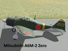 A flyable Mitsubshi Zero A6M2 fighter aircraft, with yellow marking. Reskin by Papou with permission.