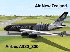 An Air New Zealand Airbus A380-841 aircraft, startup aircraft, tentative black livery as Air NZ never flew the A380, Reskin by Papou with permission.