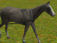 A single horse in harness - walking. The horse has a walking gait only. This is an engine. Couple this to a companion wagon or a canal boat. Place it on invisible track and get it up to speed quickly. DCC works best.