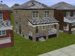 A Canadian brick house without sidewalk and driveway. Left side.