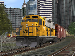 Finally, the demo also has two passenger trains that run the whole main line, for those who'd like to just jump in the cab and take a tour of the route. One local commuter train, located near the western Pittsburg portals, stops at every main line station to load passengers. At the other end of the route, near the Washingon portals, a long-distrance train is poised to run the entire route without stopping. You can let either train run on autopilot or take over yourself. The express train takes about 28 minutes and the commuter train about 35 minutes.