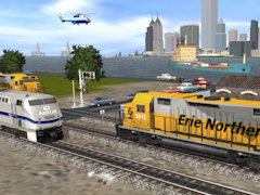 Erie Northern now spans over 140 baseboards, and users of the TRS2006 version will find the TS12 version to be dramatically different, with upgraded track, speed trees and many new features. New for TS12 are ships, helicopters and the extensive use of the Path command to streamline traffic at choke points. Within each session, the four programmable turntables can be controlled with driver commands.