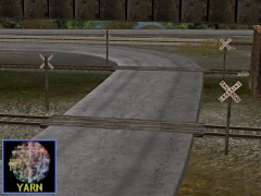This is an unprotected grade-level road/rail crossing with old wooden crossing boards. It's designed to be used with my unmarked road YARN L2 DL0 -Si -Sh (kuid2:124017:26010:1), but should work with other roads too.