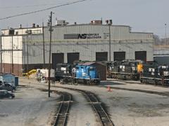 Norfolk Southern Bellevue Locomotive Repair Shop. Has five attachment tracks. this asset will snap to the baseboard. Has a Dig Hole for the pits, therefore, for best results, should only be rotated in 90 degree intervals.