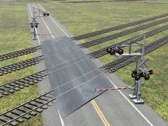 Grade Crossing Overhead US 2 Lanes 4 Track 315 Griswold with protypically animated gates and lights. The side lights are removable and the crossbucks are interchangable. See the readme file located in the instruction folder, These crossings will only work in 2012 and later versions.