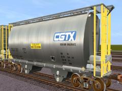 A 2-Bay Cylindrical Covered Hopper used to transport Sodium Chlorate for the paper industry, lettered for CGLX #333. Hopper is industry active to accept Sodium Chlorate load. May be reskinned as long as license is observed.