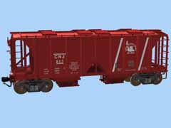 The American Car & Foundry (ACF) design of 1939 - the first standard design of an efficient, purpose-built covered hopper car for the transport of dry bulk materials that must be protected from the environment. Previous attempts were simply open-top hoppers with roofs on them. The ACF car, as it evolved after the first couple of prototypes (first car was for L&NE), had a 1958 cubic feet, 70-ton capacity, had two bays, four discharge gates, and eight top-side loading hatches. More than 6000 examples of these cars were built for 35 US railroads and 13 private companies.