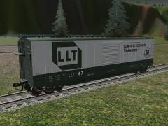 Pullman standard PS-1 50 foot Boxcar lettered for LLT with Lewis & Logman Transfer logo. Provided with ARN. Thanks to Jointed Rail for permission to use parts of their Config file & scripting to help generate this model.