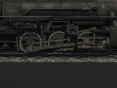 Driver bogey for USRA 0-6-0 with Baker valve gear. 51 inch drivers with 11 foot wheelbase. This set has white striping.