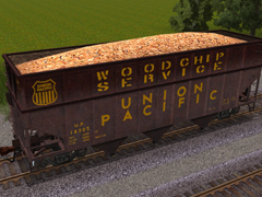 40 ft. wood chip hopper. Lettered for Union Pacific Railroad. Provided with ARN. Will load my Wood Chip Loads, Kuid number 101046:101119.