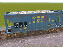 Greenville Steel Car Aggregate Hopper lettered for Golden West as patched SP, Version 1 of 2, & weathered, 100 ton capacity. Provided with ARN & LOD. Thanks to Ed (Euphod) and Charles (Torino72) for beta testing this car.