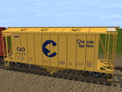 GATC 2600 DryFlo Covered Hopper C&O Chessie System (with Animated unloading). Provided with ARN. Thanks to Conn McCarthy, author of the original unloading script, and thanks also to the Jointed Rail guys for the use of ARN.