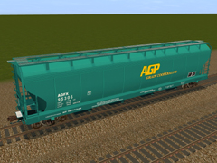 Тип: traincarACF 5170 4-Bay Covered Hopper lettered for AGP with logo (with Animated unloading). Provided with ARN. Re-worked 4/25/26 to add end stirrups and my newest coupler at the request of n8phu.
