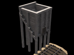 A single weathered ore bin. Used for transferring ore from wagons, trucks, or mine cars to a railroad car.