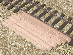 Side boards for a 10' wood crossing. Non-interactive (does not stop traffic or connect to road splines). Will snap to track for proper placement.