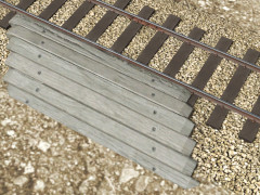 Side boards for a 10' wood crossing. Non-interactive (does not stop traffic or connect to road splines). Will snap to track for proper placement.