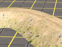A shallow fill spline made of brown dirt, but with no endcap so as to better align with bridge abutments.
