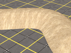 Fill spline made of brown ballast, but with no endcap so as to better align with bridge abutments.