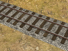 36 inch narrow gauge track with gray dirt ballast and milled ties.
