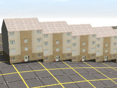 Modern apartment block. Found all over the UK. Lo-poly Spline version - should stay upright on slight slopes & not stretch.