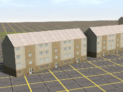 Modern apartment block. Found all over the UK. Lo-poly Spline version - should stay upright on slight slopes & not stretch.