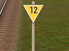 Signal Lf6 der DB. Die Beschriftung erfolgt mit Angabe der Geschwindigkeit.