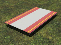 Seasonal modern Polish platform M4-JK, red variant, 7.3 meter width. Security zone width 0.75 m: all trains stop or pass with no more than 60 km/h. Recommended to use together with the corresponding PNS Polish Invisible Station asset.