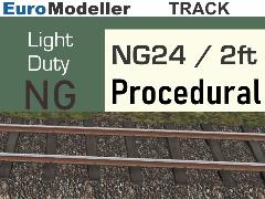 A light-duty narrow gauge track of iron pins through wooden sleepers on gravel ballast
