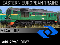 ST44-1106 diesel locomotive owned by PKP Cargo, state and paintscheme of 2010. 3d kilanziom, photos kilanziom, textures kilanziom, script RBach. TRS12+. This model was tested in TS19 with fixed light script. Use view details window to control all options of the model including lights, doors and the nightview.