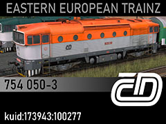 754 050-3 diesel locomotive owned by Czech Railways (CD), state and paintscheme found between 2008 and 2018. 3D kilanziom, photos kilanziom, textures patryk94, script RBach. This model was tested in TS19 with fixed light script. Use view details window to control all options of the model including lights, doors and the nightview.