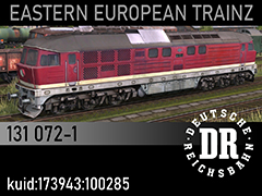 131 072-1 diesel locomotive owned by East German Railways *DR). Manufactured by Teplovoz Lugansk in 1973, out of service by 1994 and sold to railway museum in Arnstadt. 3D by kilanziom, photos by Marcus, textures by MarekS, script by Rbach. This model was tested in TS19 with fixed light script. Use view details window to control all options of the model including lights, doors and the nightview.