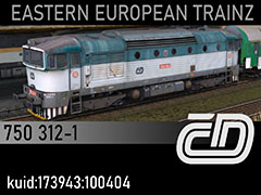 750 312-1 diesel locomotive of Czech Railways, late 2000s state and paintscheme. 3d kilanziom, photos m0ke, textures kilanziom, script Rbach. This model was tested in TS19 with fixed light script. Use view details window to control all options of the model including lights, doors and the nightview.