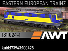 181 024-1 electric locomotive owned Advanced World Transport (AWT), late 2000s state and paintscheme. 3d kilanziom, photos m0ke, textures kilanziom, skrypt RBach. This model was tested in TS19 with fixed light script. Use view details window to control all options of the model including lights, doors and pantographs.