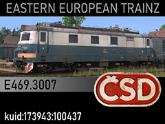 E469.3007 electric loco of Czechoslovak State Railways CSD, paintscheme and lettering introduced in 1982. 3d kilanziom, photos thunderbird, textures kilanziom, Script RBach. TS12+, for any missing assets visit www.trainzart.pl - tested in TS19 with fixed light script. Use view details window to control all options of the model including lights, doors and pantographs.