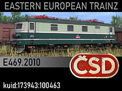 E469.2010 electric loco of Czechoslovak State Railways CSD, paintscheme and lettering utilized in the late 1960s and early 1970s. 3d kilanziom, photos kilanziom, textures kilanziom, Script RBach. TS12+, for any missing assets visit www.trainzart.pl - tested in TS19 with fixed light script. Use view details window to control all options of the model including lights, doors and pantographs.