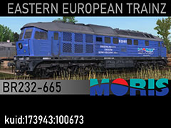 232 665-0 diesel locomotive owned by Moris company from Poland. 3D kilanziom, photos kilanziom, textures kilanziom, script RBach. This model was tested in TS19 with fixed light script. Use view details window to control all options of the model including lights, doors and the nightview.