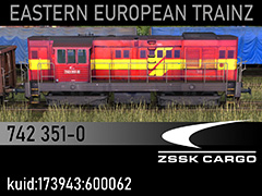 742 diesel locomotive in ZSSK Carego paintscheme, widely used on the railway system of Slovak Republic. 3d kylo0, photos kilanziom, textures kilanziom, script Qcyk85. This model was tested in TS19 with fixed light script. Use view details window to control all options of the model including lights, wipers and physics.