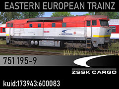 751 195-9 diesel locomotive owned by ZSSK Cargo, early 2010s state and paintscheme. 3d kilanziom, photos kilanziom, tex mates478, script RBach. This model was tested in TS19 with fixed light script. Use view details window to control all options of the model including lights, doors and the nightview.