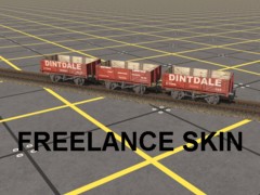 A blank red 5 plank private owner wagon suitable for lettering how you might want to. With thanks to Bob Sanders for the use of his original wagon model for reskinning. Dintdale reskin by Andy Turnbull (Dermmy) - all other work as credited above.