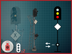 3-aspect Main Line Indicator. Capable of displaying a warning aspect. Fitted with: