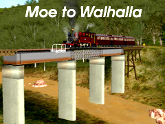 The locomotives used on the line included a Garrat of which two were operated by the railways in the State of Victoria. Appropriate narrow gauge rolling stock can be found on SirGibby's Web Site. The cliffs and cuttings are on SirGibby's Site also. Animated figures are from neoklai75's site.