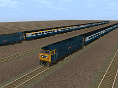 Mk3a coach consist headed by a class 87 loco as used on London Midland Region / West Coast Mainline services in the late 1970s/early 1980s (before DBSOs were introduced).