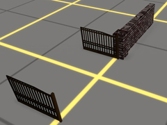 Open iron gate for coal storage area or yard, 6m long, 2m high with 7m long fixed wall, to one side of the door.