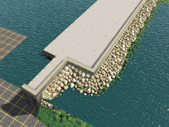 Port dock or quay on one side and breakwater on the other side, with a 60m wide and 20m high, concrete floor. Version 5. It is a SPLINE of 3 parts, beginning, middle or repetition zone and end.