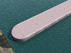 Тип: trackPort dock or quay on both sides, with gray 2 cobblestones floor and curved end, 30m wide and 20m high. Version 4. It is a SPLINE of 3 parts, beginning, middle zone or repetition and end.