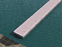 Port dock or quay on both sides, with gray 2 cobblestones floor and straight or rectangular end, 15m wide and 20m high. Version 4. It is a SPLINE of 3 parts, beginning, middle zone or repetition and end.