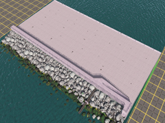 Port dock or quay on one side and breakwater on the other side, with a 60m wide and 20m high, gray 2 cobblestone floor. Version: v4se. It is a SPLINE of 3 parts, full start, middle or repetition zone and SIMPLE ENDING (se).