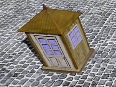 Wooden hut for the protection of customs and police surveillance personnel. Size 1.2m long and 1.2m wide, with hipped roof. Version DR, straight walls. The difference between versions lies in the difference of doors and windows.