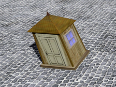 Wooden hut for the protection of customs and police surveillance personnel. Size 1.2m long and 1.2m wide, with hipped roof. Version BIn, slightly sloped walls. The difference between versions lies in the difference of doors and windows.